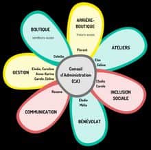 - une gouvernance sociocratique et 7 groupes de travail qui se développent :