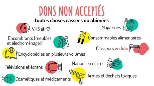 - Nous ne sommes pas non plus en mesure d’accepter des choses cassées ou abîmées, car nous n’avons pas les compétences pour les réparer, mais d’autres structures peuvent peut-être les récupérer !